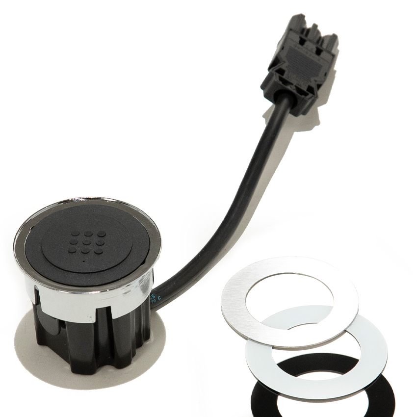 Встраиваемый модуль с необходимостью минимального выреза для встройки в 60мм, имеющий в комплектации беспроводную зарядку. Благодаря тому, что он может быть встроен как в горизонтальную, так и вертикальную плоскость, данный продукт является максимально функциональным при оборудовании им рабочих столов, комплектов мебели для спален, мягкой и кухонной мебели.