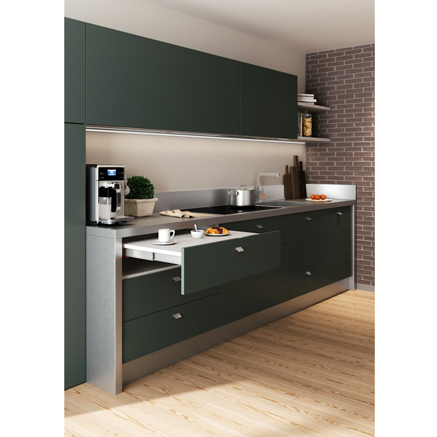 ATIM Shot механизм-трансформер, разработанный ATIM, позволяет извлечь небольшой стол из простого кухонного ящика, что очень полезно как во время приготовления еды, так и для быстрого перекуса. Система ATIM Shot открывается и закрывается одним движением руки. Модель была создана, чтобы упростить жизнь на любой кухне, не зависимо от размеров, и обеспечить максимальное удобство использования.