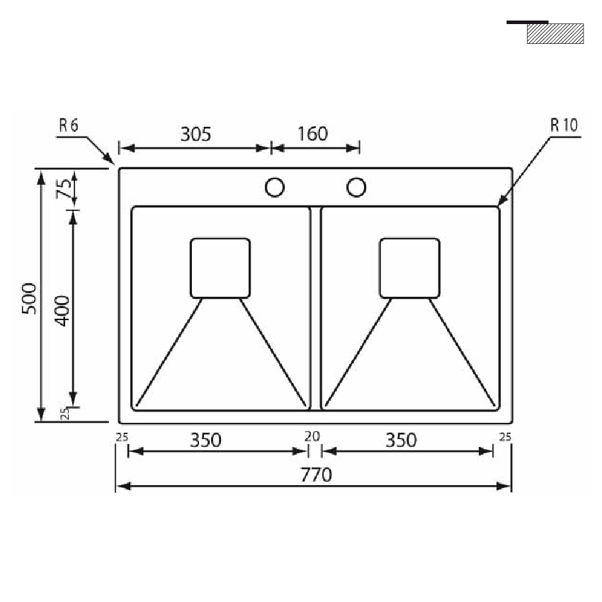 | Размеры мойки | 770х500 мм |