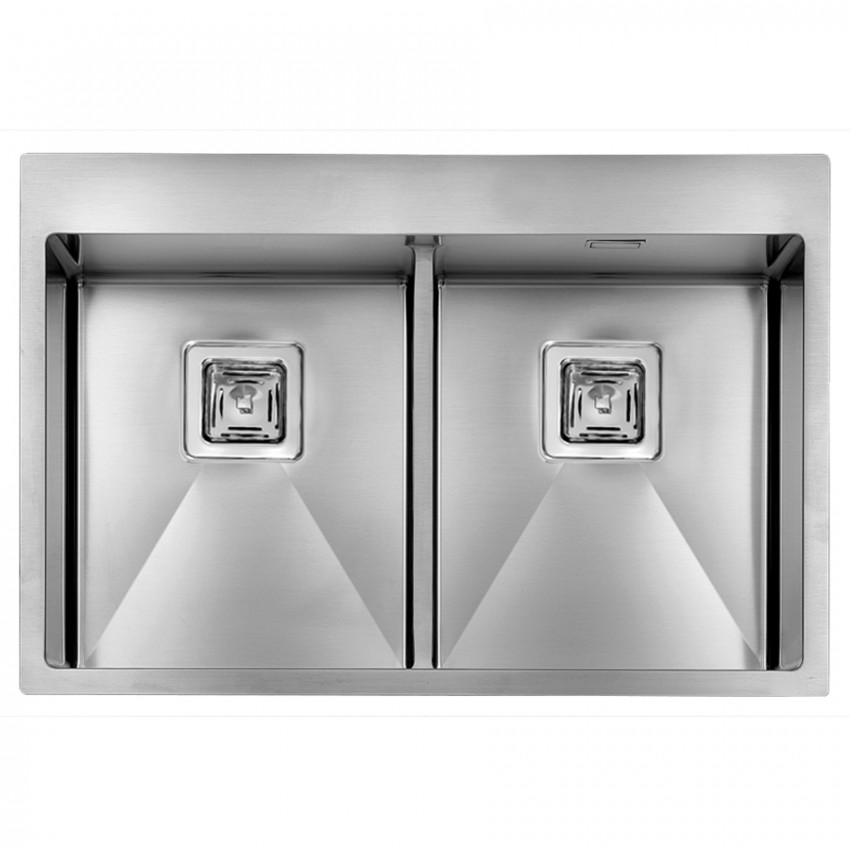 Накладная прямоугольная кухонная мойка CM Batik 77Х50 2V 12032 из полированной нержавеющей стали с двумя чашами без крыла.