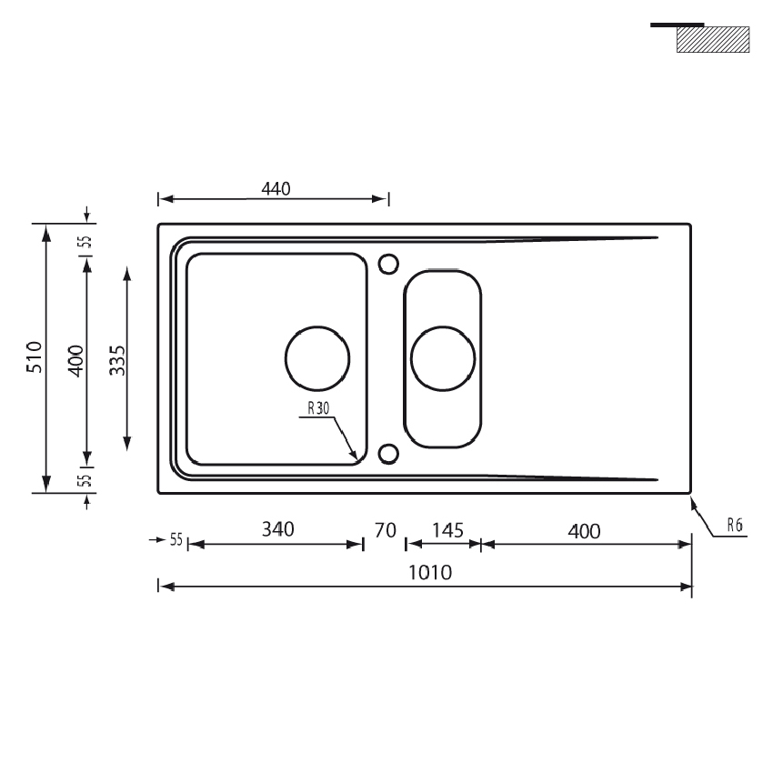 | Размер чаш(и) | 340х400 мм, 145х335 мм |