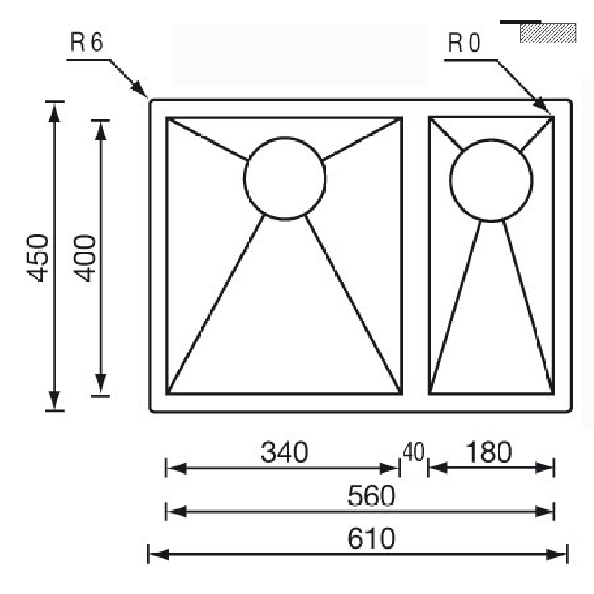 | Размер чаш(и) | 340х400 мм, 180х400 мм |