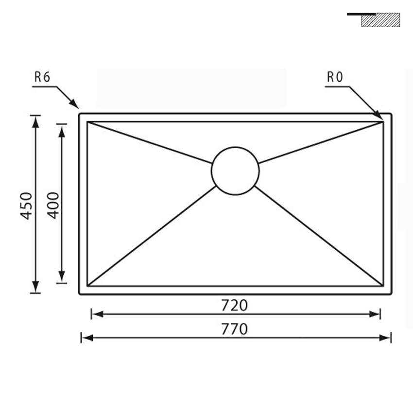Врезная прямоугольная кухонная мойка CM Filoquadra 77Х45 11926 из полированной нержавеющей стали с одной чашей без крыла.
