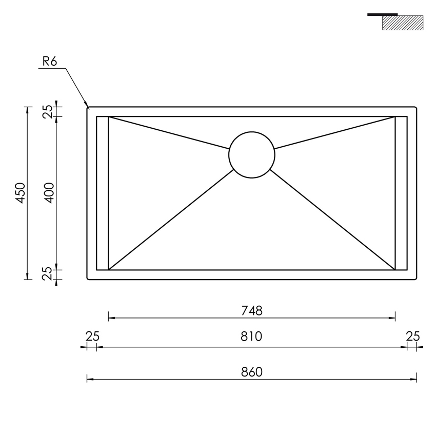 Накладная прямоугольная кухонная мойка CM Focus 86Х45 15204 из полированной нержавеющей стали с одной чашей без крыла.