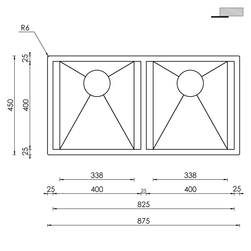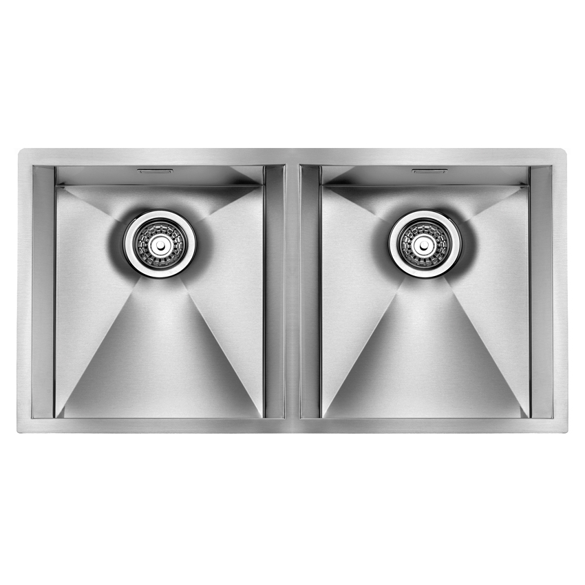 Подстольная прямоугольная кухонная мойка CM Focus 87,5Х45 2V 15215 из полированной нержавеющей стали с двумя чашами без крыла.