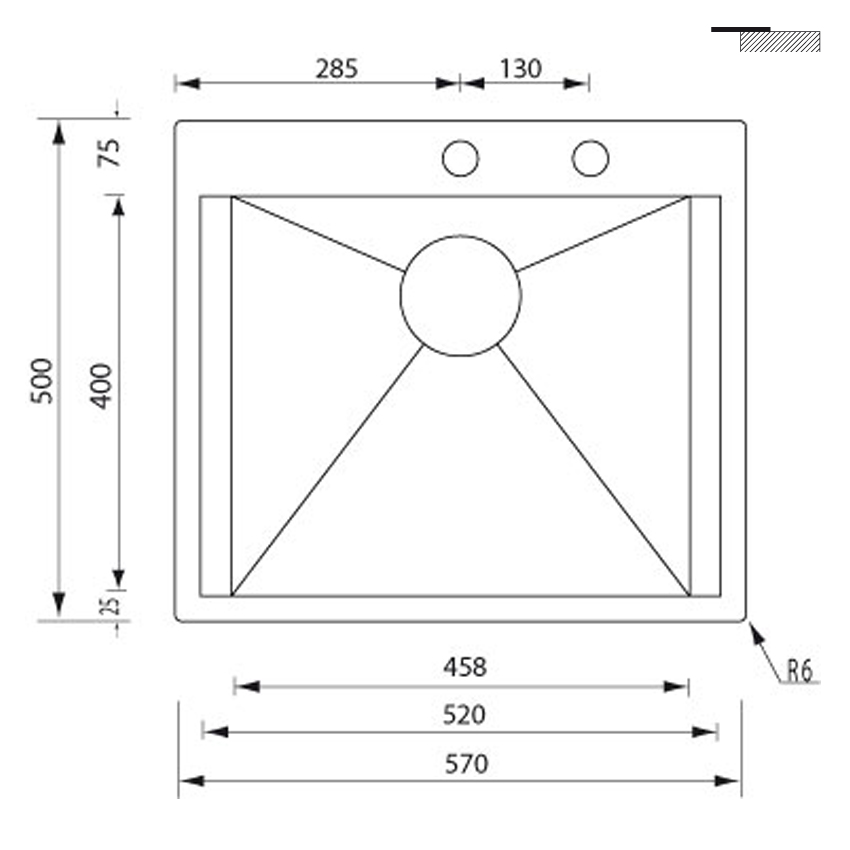 Накладная прямоугольная кухонная мойка CM Focus Mix 57Х50 15222 из полированной нержавеющей стали с одной чашей без крыла.