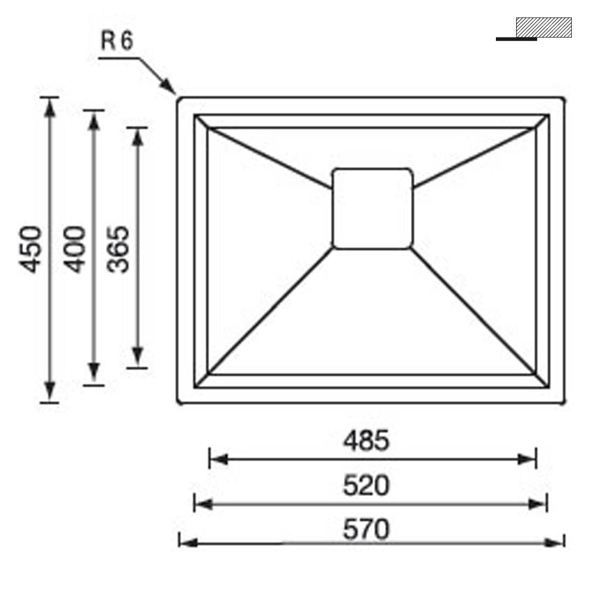 Подстольная прямоугольная кухонная мойка CM Glamour 57Х45 12812 из полированной нержавеющей стали с одной чашей без крыла.
