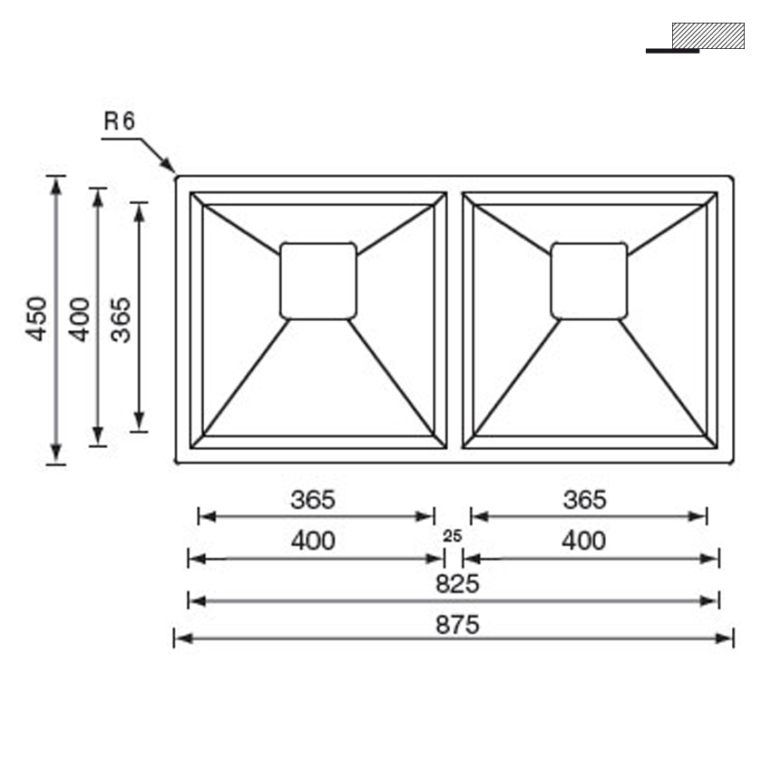 Подстольная прямоугольная кухонная мойка CM Glamour 87,5Х45 2V 12815 из полированной нержавеющей стали с двумя чашами без крыла.