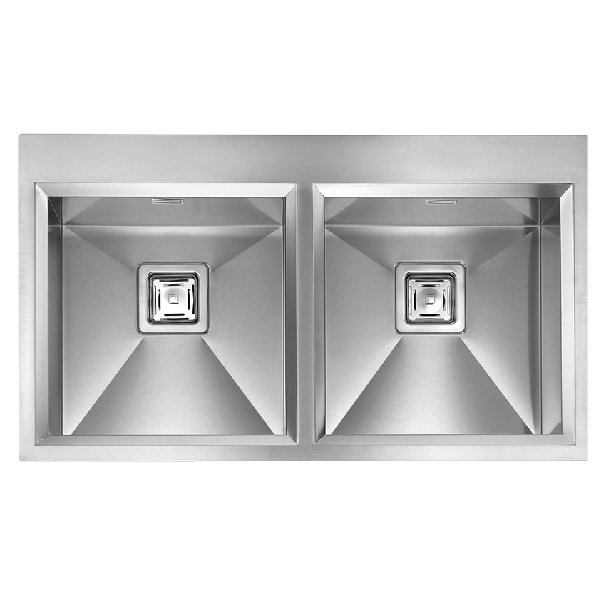 Накладная прямоугольная кухонная мойка CM Glamour Mix 87,5Х50 12825 из полированной нержавеющей стали с двумя чашами без крыла.