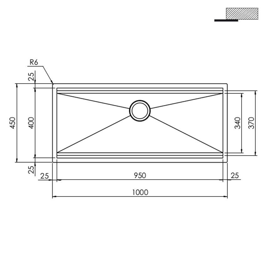 Подстольная прямоугольная кухонная мойка CM Major 100Х45 15506 из полированной нержавеющей стали с одной чашей без крыла.