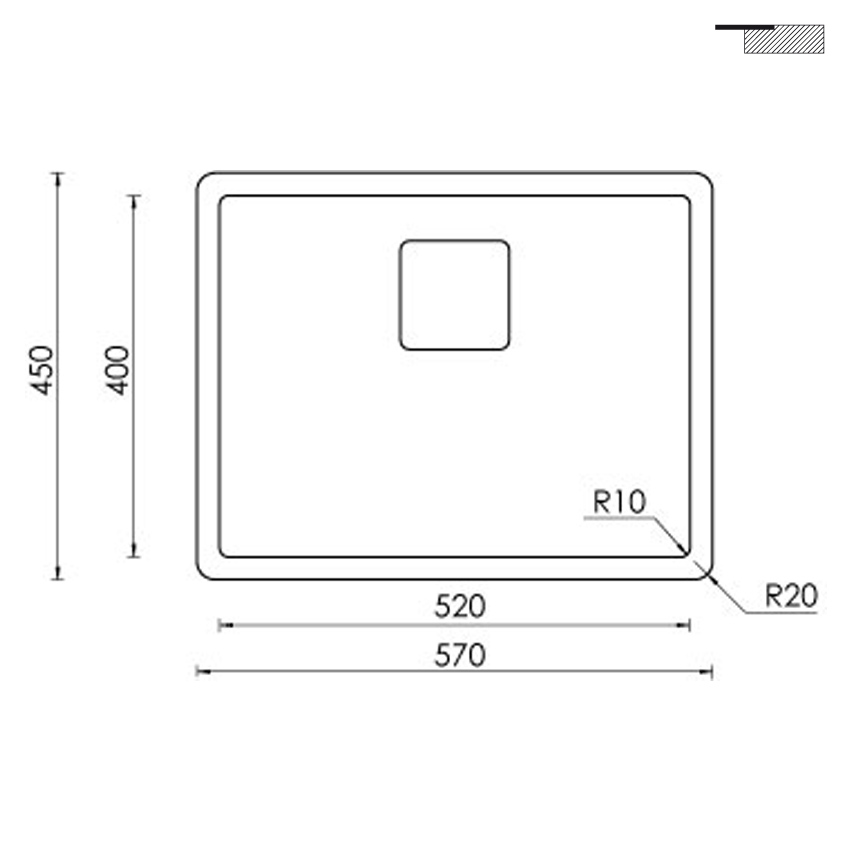 Врезная прямоугольная кухонная мойка CM Pyper 57Х45 15356 из полированной нержавеющей стали с одной чашей без крыла.