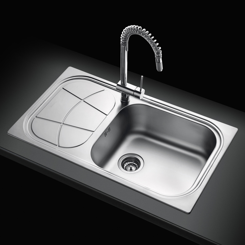 Накладная прямоугольная кухонная мойка Foster Big Bowl 86x50 1561 202 LH из полированной нержавеющей стали с одной чашей и крылом.