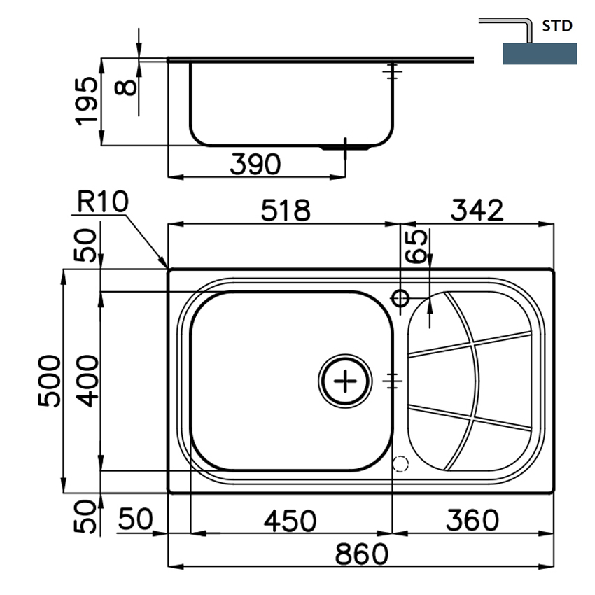 | Размеры мойки | 860х500 мм |