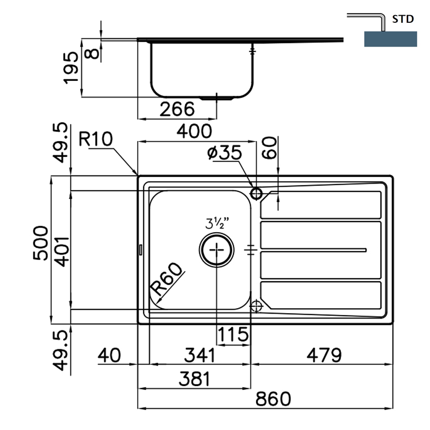 | Размеры мойки | 860х500 мм |