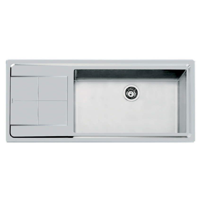 Накладная прямоугольная кухонная мойка Foster KE 117х51 2211 051 RH из полированной нержавеющей стали с одной чашей и крылом справа.