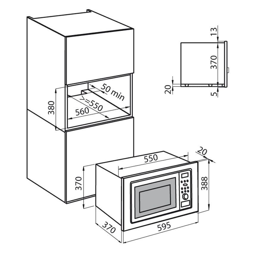 Встраиваемая микроволновая печь Foster KS 7151 010 на 25 литров, с 5 функциями, грилем и сенсорным управлением.