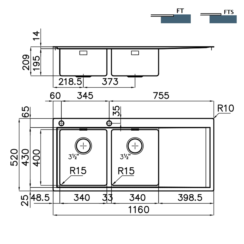 | Глубина чаш(и) | 195 мм, 195 мм |