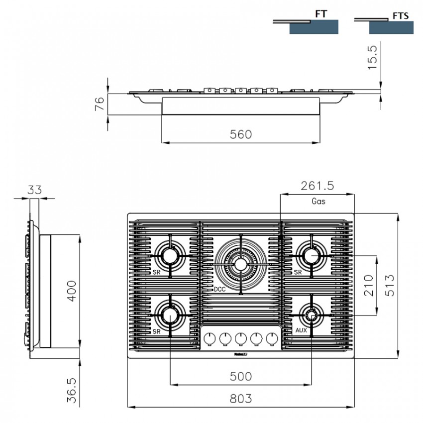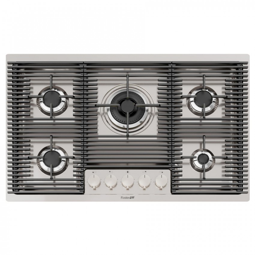 Газовая варочная поверхность Foster Milanello 5F 7682 000 с электроподжигом, газ-контролем и конфоркой с двойным рядом пламени