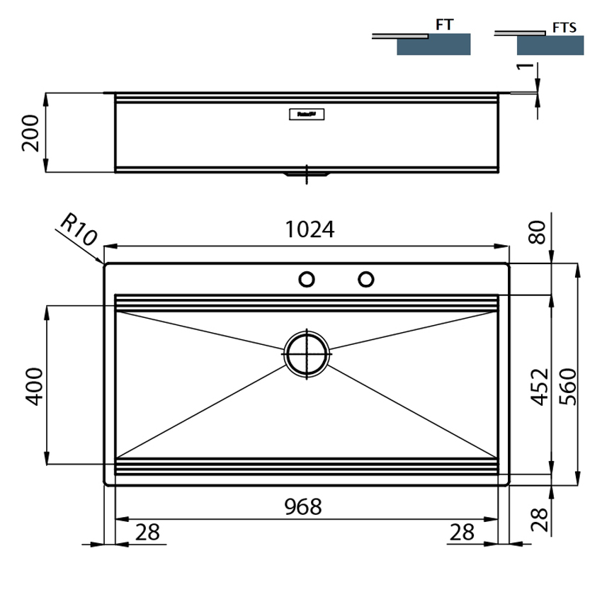 Накладная, в уровень прямоугольная кухонная мойка Foster Milano 102х56 1017 050 из полированной нержавеющей стали с одной чашей без крыла.