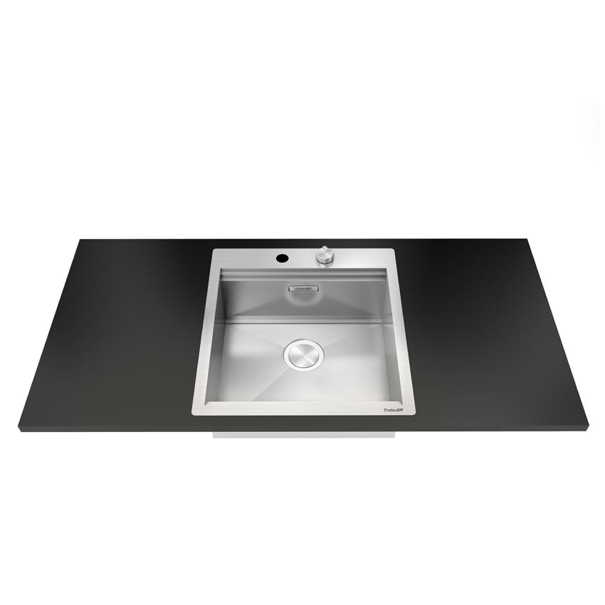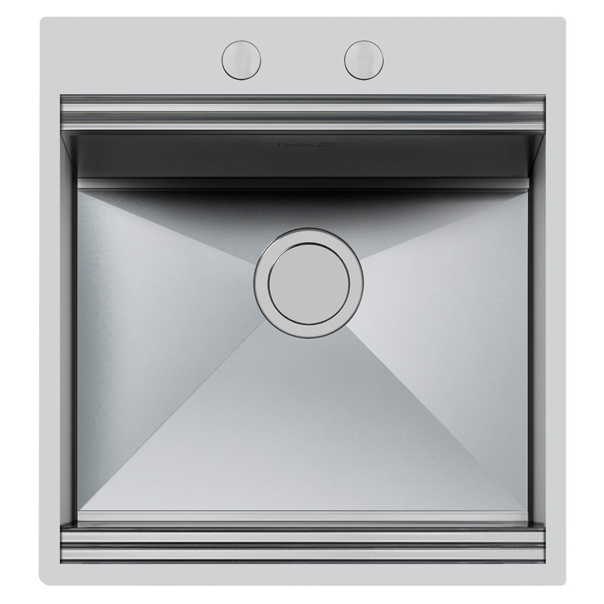 Накладная, в уровень прямоугольная кухонная мойка Foster Milano 51х56 1011 050 из полированной нержавеющей стали с одной чашей без крыла.