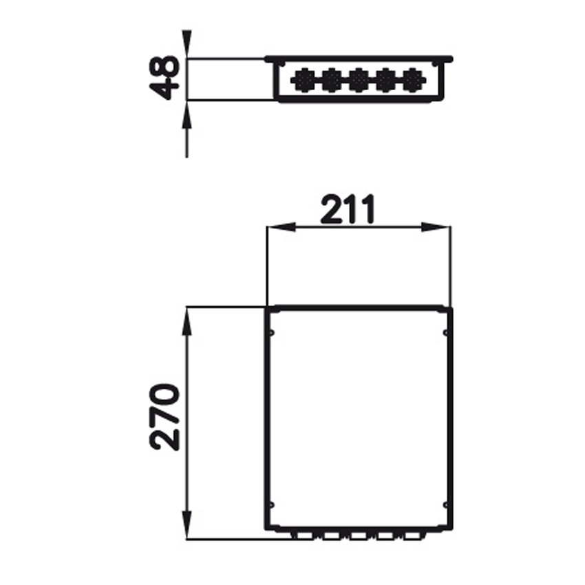 | Монтажное отверстие | блок управления: 275х150 мм R75, соединяющий модуль: 211х270 мм, индукционные зоны D 350, D 300, D 270 |