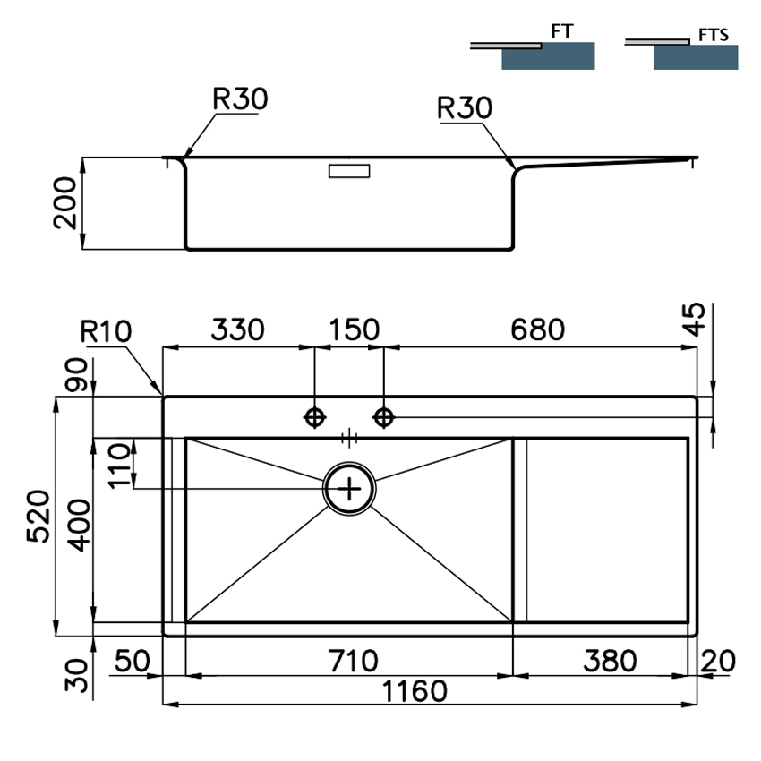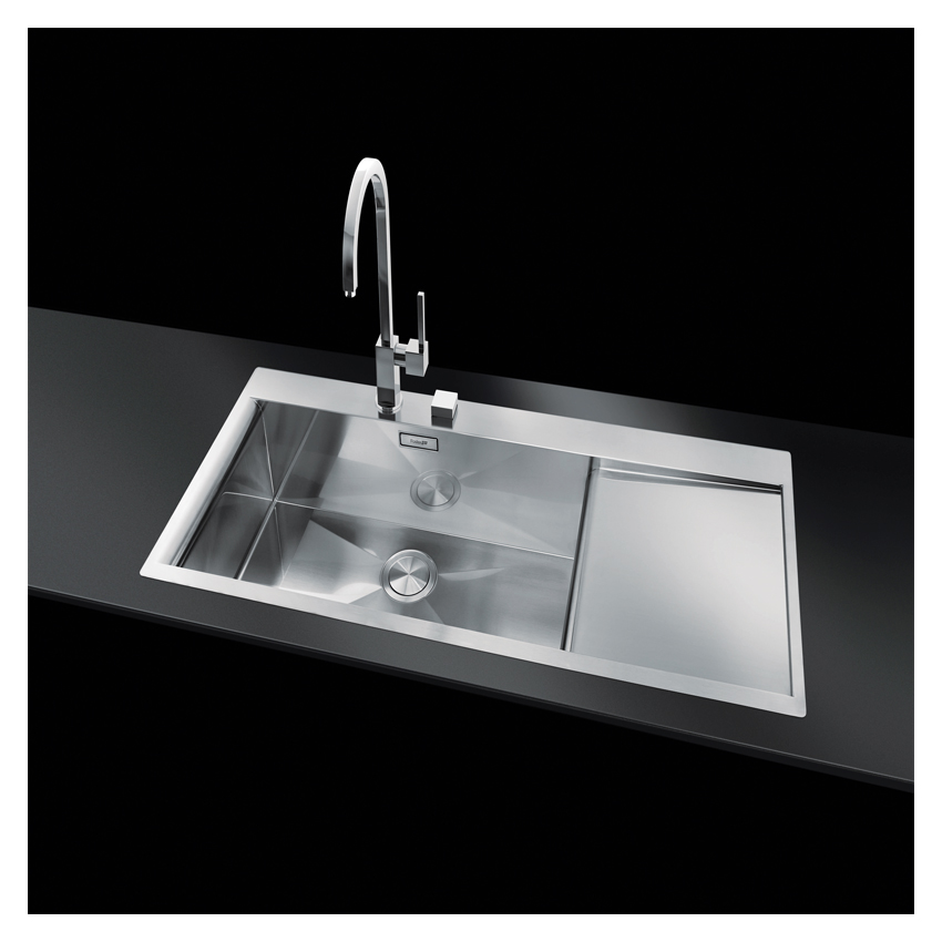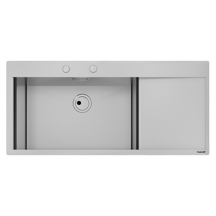 Накладная, в уровень прямоугольная кухонная мойка Foster New Wave 116х52 1416 002 LH из полированной нержавеющей стали с одной чашей и крылом.