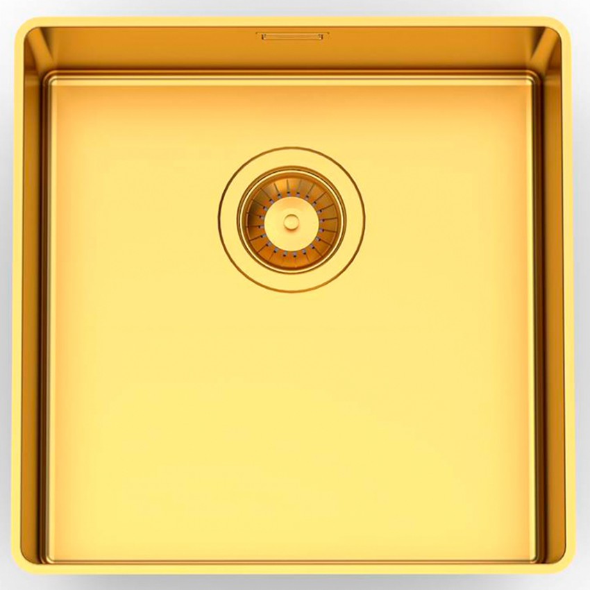 Накладная, в уровень квадратная кухонная мойка Foster Phantom Edge Gold 41x41 4340 009 из нержавеющей стали (PVD Gold) с одной чашей без крыла.