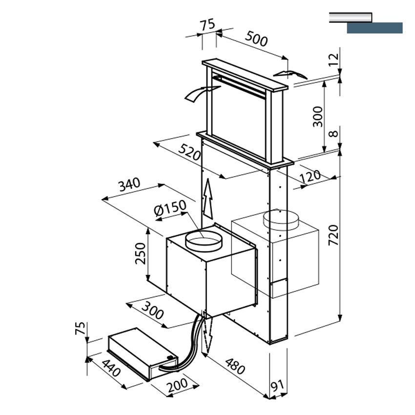 Полновстраиваемая кухонная вытяжка Foster S4000 Domino Ghost 2451 000 с сенсорным управлением и максимальной производительностью 640 куб. м/час.