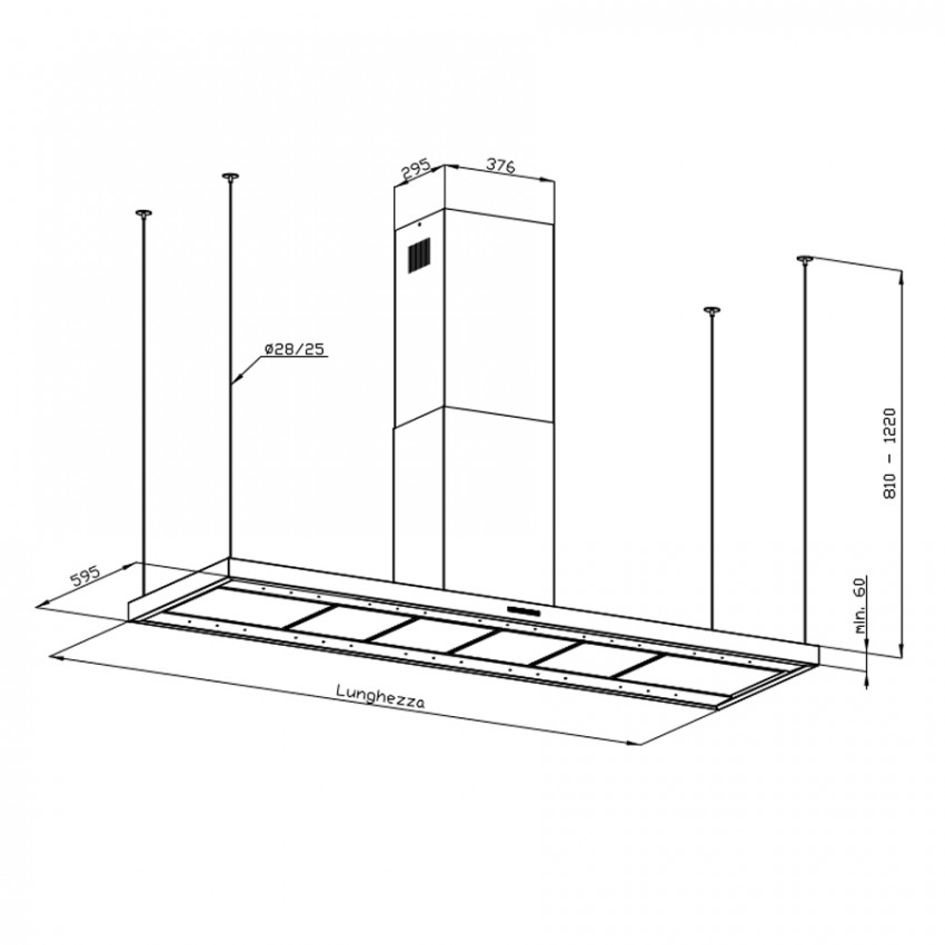 | Опции за дополнительную плату | купольные стержни-крепления, большая стальная полка (мин. толщина 30 мм), стержни-крепления со стольным тросом, винтажная стальная отделка, телескопический короб вне центра вытяжки, короб для наклонного потолка |