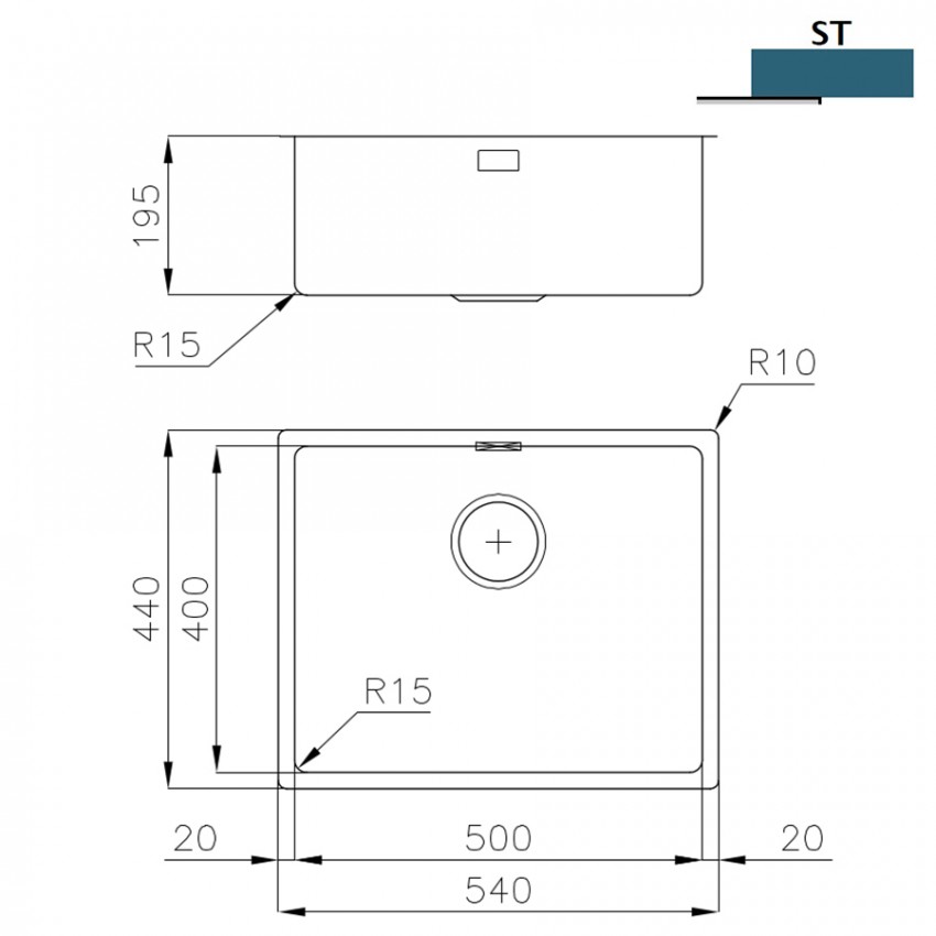 Подстольная прямоугольная кухонная мойка Smokey 1155 858 из нержавеющей стали с одной чашей без крыла.