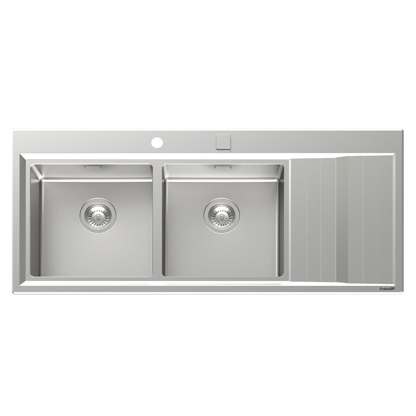 Накладная прямоугольная кухонная мойка Foster Stripe 117х51 4503 052 LH из полированной нержавеющей стали с двумя чашами и крылом.