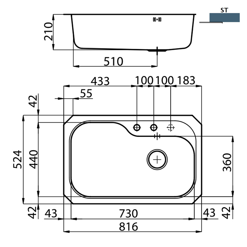 | Размеры мойки | 816х524 мм |