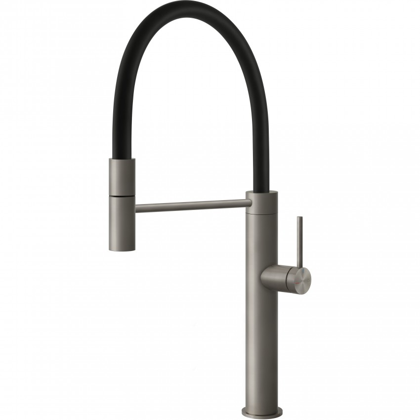 Коллекция Gessi 316 Kitchen сочетает в себе современный итальянский дизайн и технологичность нержавеющей стали AISI 316. Модель 60010 выполнена в отделке Flessa — с мягкой шлифованной текстурой, которая подчеркивает естественную красоту стали и создаёт ощущение плавности и утончённости. Такая поверхность гармонично вписывается в интерьеры с акцентом на минимализм и лёгкие линии.