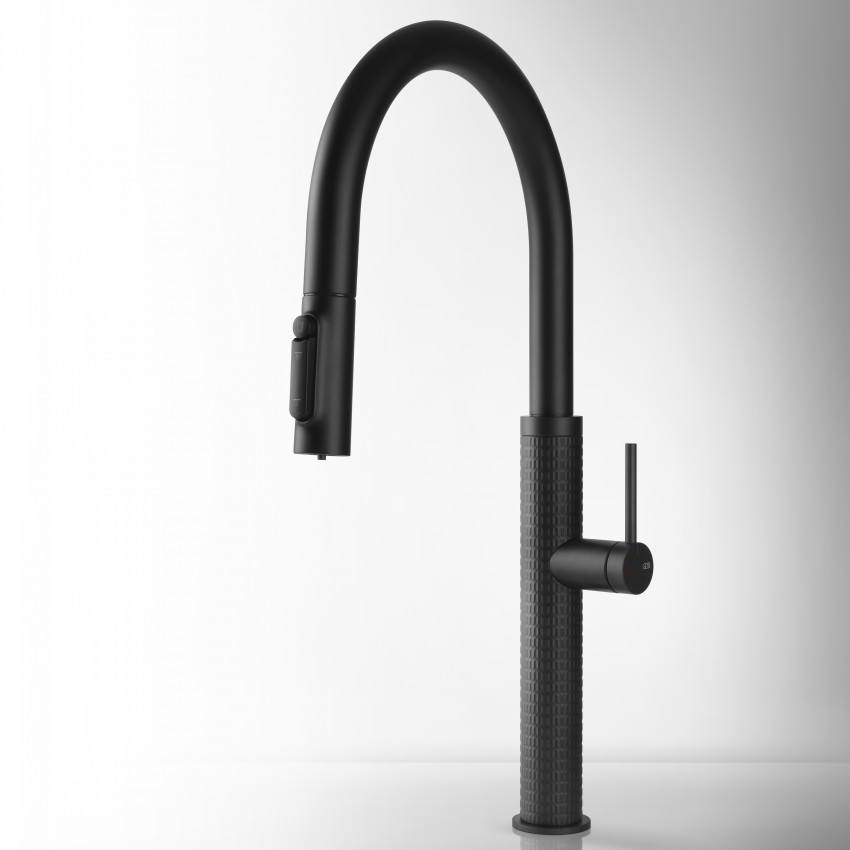 Смеситель в отделке Meccanica отличается чёткой геометрической фактурой, которая придаёт поверхности глубину и современный характер. Коллекция выполнена из нержавеющей стали AISI 316 и гармонично сочетает эстетику и функциональность, обеспечивая подачу фильтрованной воды без компромиссов в чистоте и дизайне.