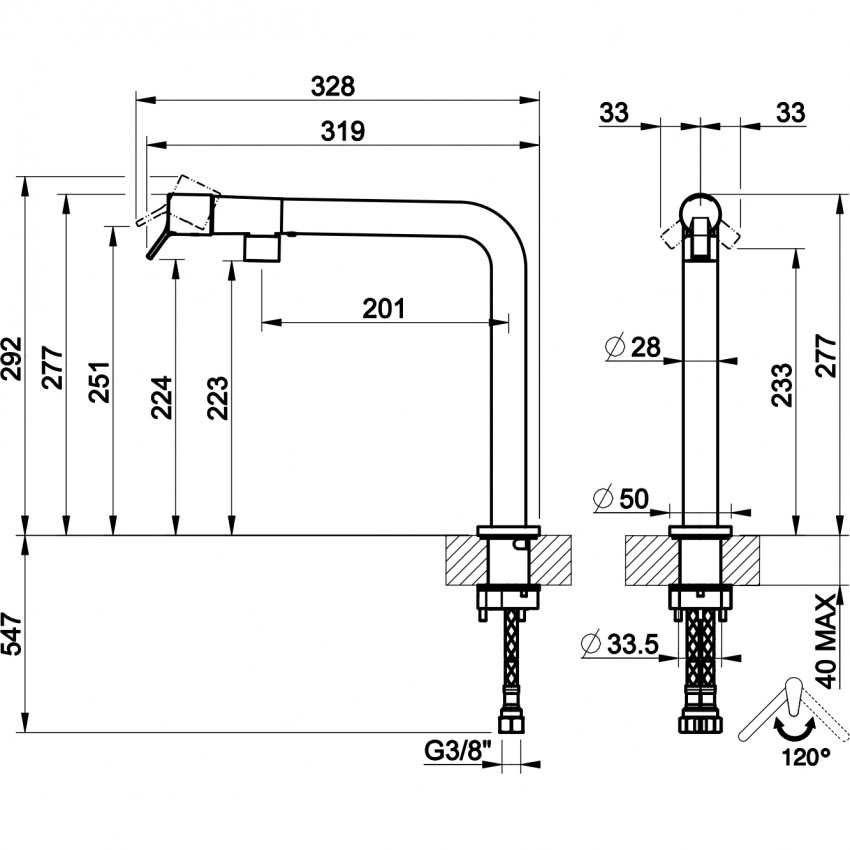 Характерной особенностью модели является излив с выверенной геометрией и верхний рычаг управления. Такое конструктивное решение подчёркивает функциональную логику формы и визуальный порядок. Компактные пропорции позволяют использовать смеситель как в просторных кухнях, так и в проектах с ограниченным пространством.