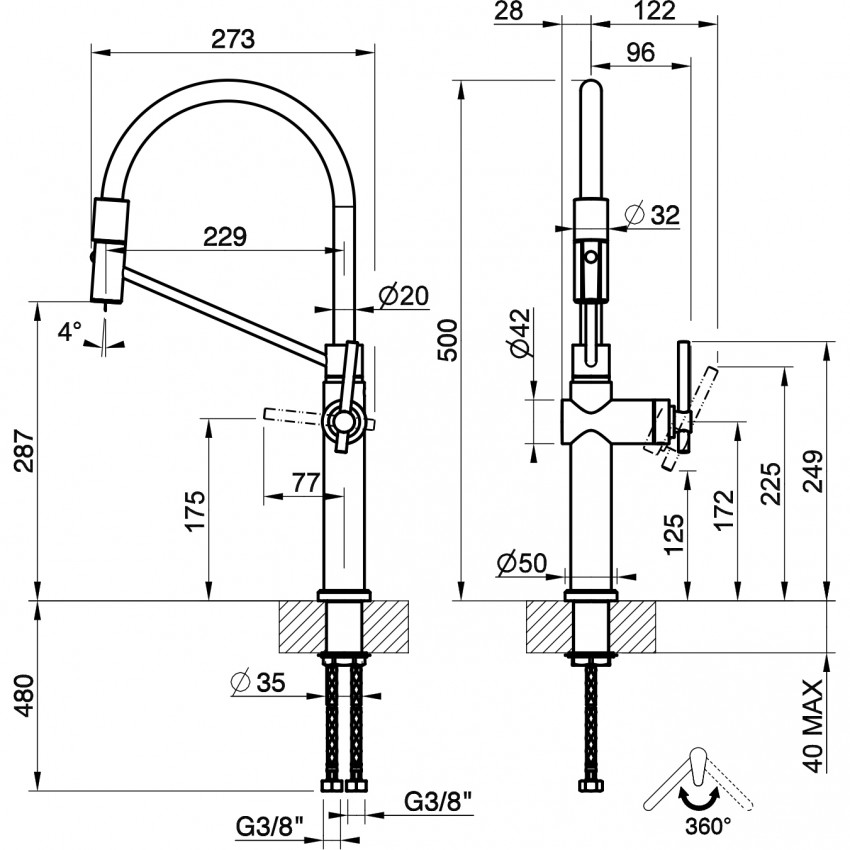 | Высота излива | 287 мм |