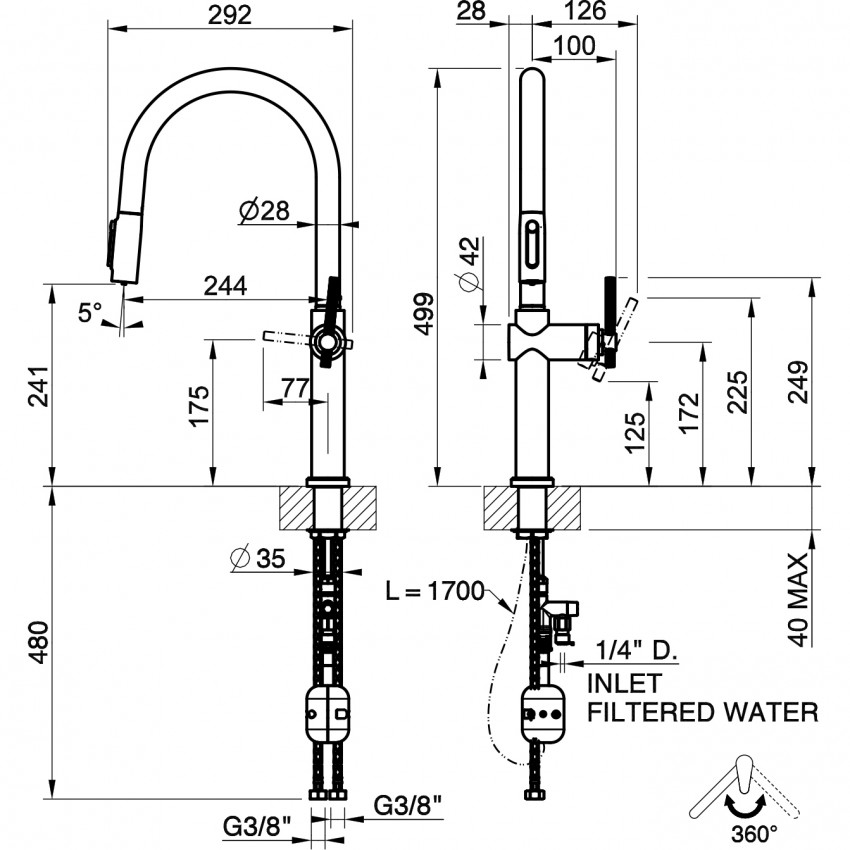 | Особенности модели | угол поворота излива 360°, подключение к фильтру |