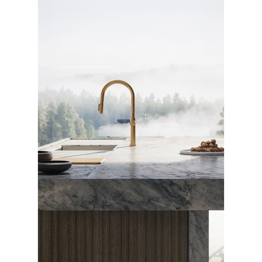 Коллекция Gessi Habito Filtered — это современное решение для кухни, где важны не только эстетика и удобство, но и качество воды. Смесители этой серии оснащены функцией подачи фильтрованной воды, что позволяет объединить стильный дизайн и практичность в одном изделии. Изготовленные из высококачественной латуни, они отличаются надёжностью, долговечностью и простотой ухода. Минималистичные линии и продуманная эргономика подчеркивают итальянский характер коллекции. Доступны разные варианты отделки — хром, сталь, чёрный мат, бронза, латунь, что позволяет подобрать смеситель под любой стиль кухни. Gessi Habito Filtered — это гармония технологий и дизайна, где чистая вода и изысканный внешний вид объединены в одной форме.