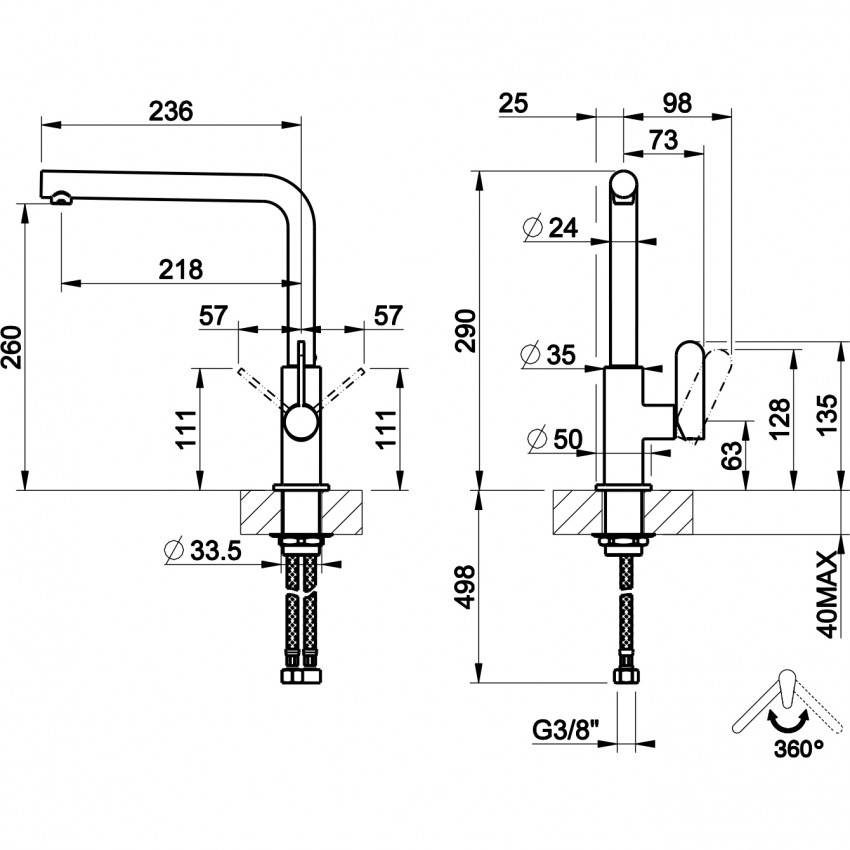 | Высота излива | 260 мм |
