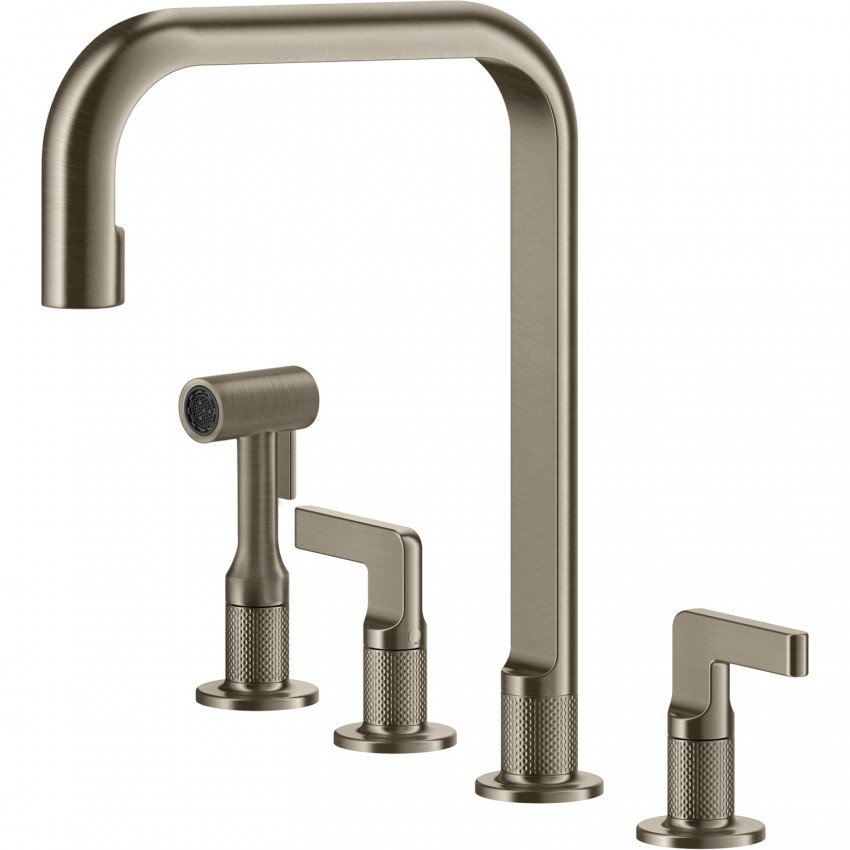 Смеситель кухонный на четыре отверстия с выдвижным душем Gessi Inciso нержавеющая сталь (58703#149)