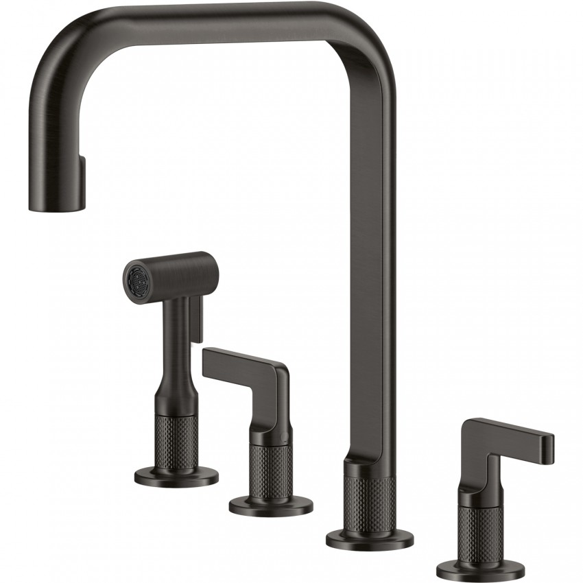 Смеситель кухонный на четыре отверстия с выдвижным душем Gessi Inciso чёрный металл брашированный PVD (58703#707)