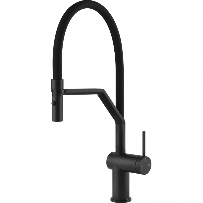Смеситель кухонный с гибким изливом и двухструйным душем Gessi Inedito матовый чёрный (60429#299)