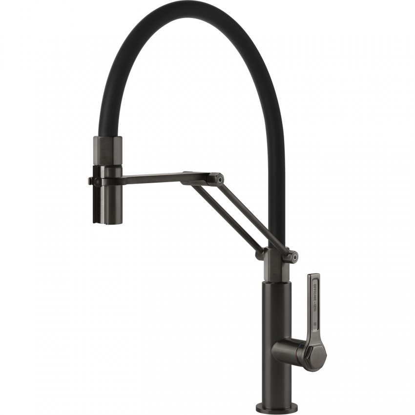 Смеситель кухонный с гибким изливом и двухструйным душем Officine Gessi чёрный метал брашированный PVD (60055#707)