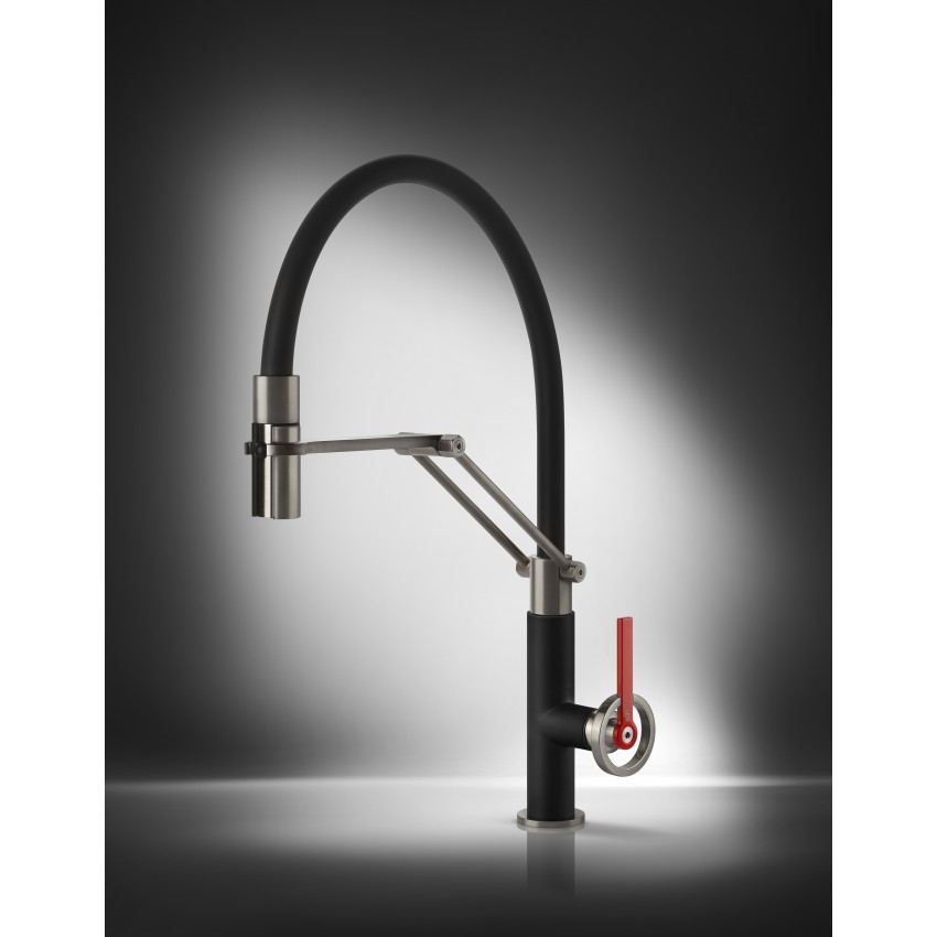 Смеситель кухонный с гибким изливом и двухструйным душем Gessi Officine Volantino нержавеющая сталь с чёрным (60205#599)