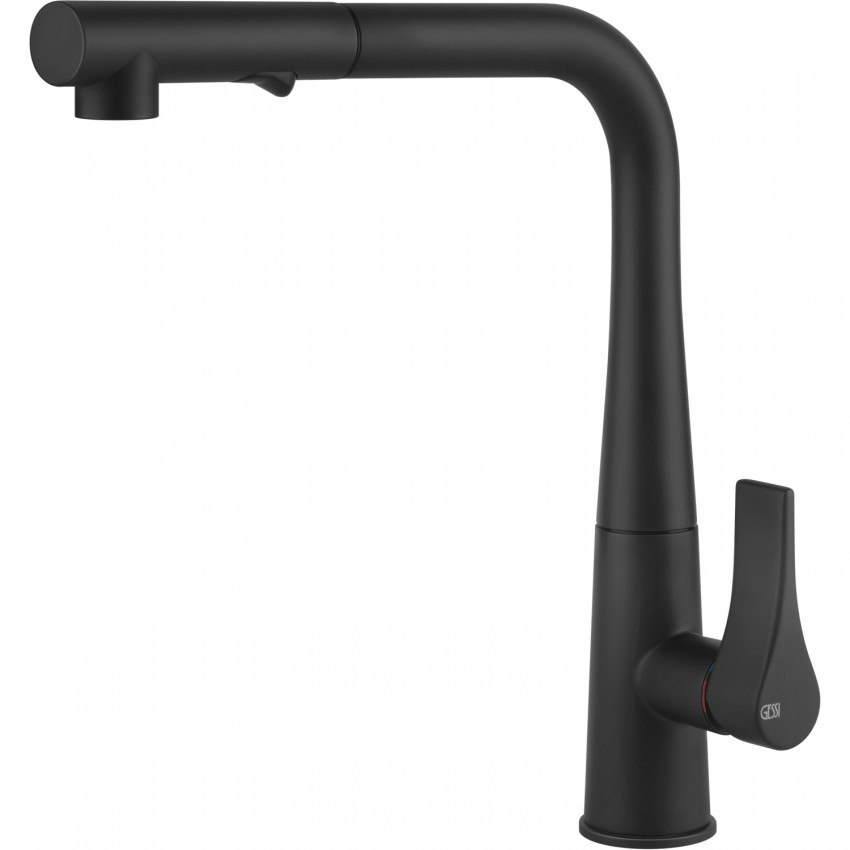 Кухонный смеситель с выдвижным изливом и двухструйным душем Gessi Proton матовый чёрный (17177#299)
