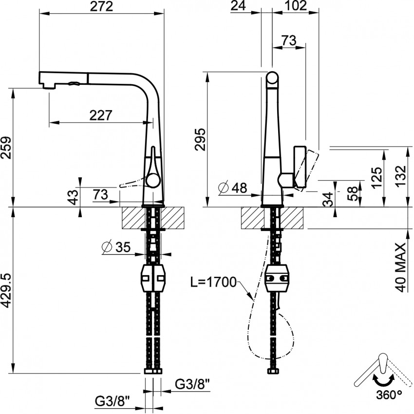 Модель 17177 — однорычажный кухонный смеситель с выдвижным изливом и двухструйным душем, разработанный для удобного и гибкого ежедневного использования. Переключение между двумя режимами подачи воды позволяет адаптировать поток под разные задачи — от мытья посуды до ополаскивания рабочей зоны. Поворот излива на 360° обеспечивает свободу движений и повышает функциональность кухонного пространства.