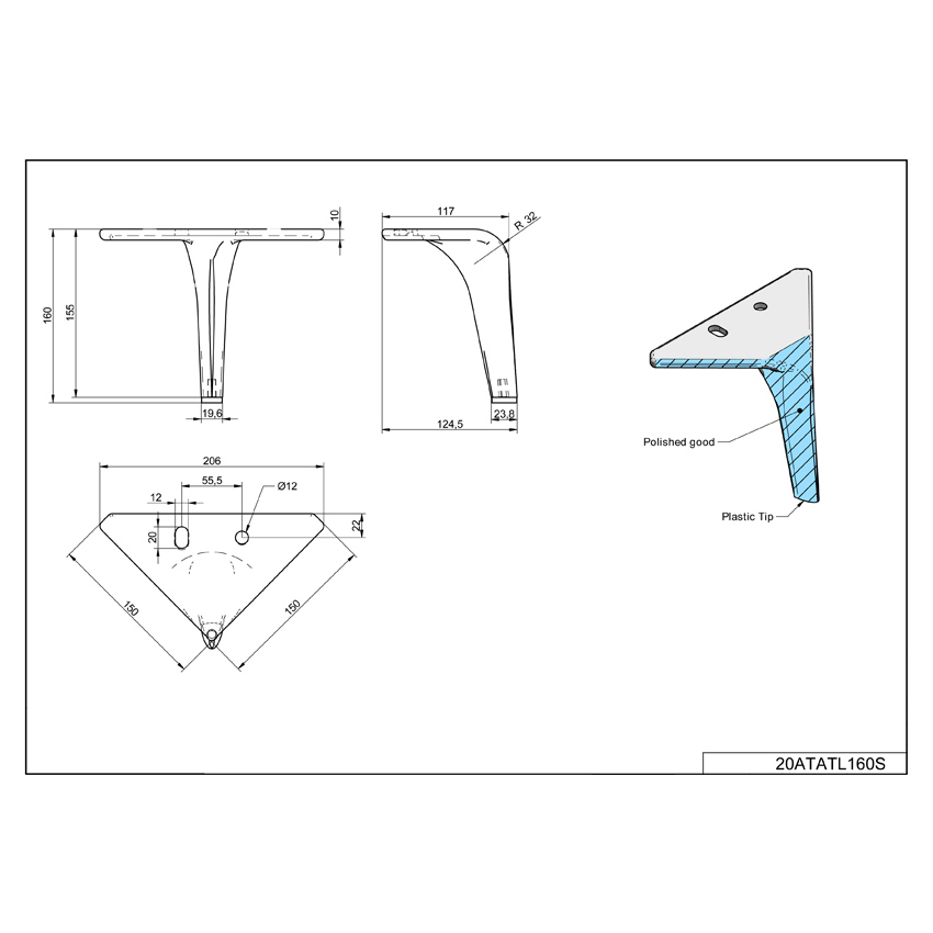 Мебельная ножка Ipea Tatoo (20ATATL160S) полированный алюминий