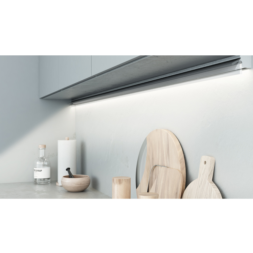 KOS - революционный светильник, специально спроектированный для подвесных кухонных шкафов, который даст возможность распределить количество света на столешнице, в соответствии с вашими потребностями. Просто отрегулируйте шторку, чтобы направить поток света.