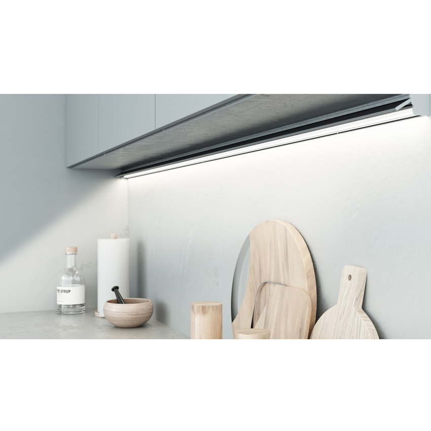 KOS - революционный светильник, специально спроектированный для подвесных кухонных шкафов, который даст возможность распределить количество света на столешнице, в соответствии с вашими потребностями. Просто отрегулируйте шторку, чтобы направить поток света.