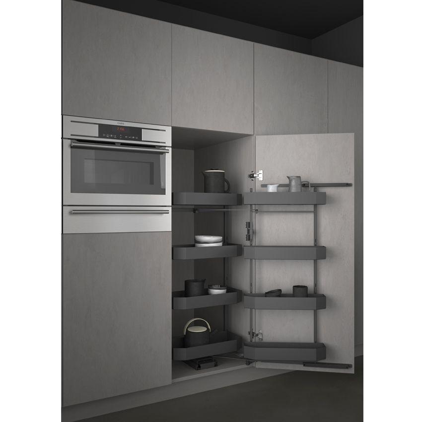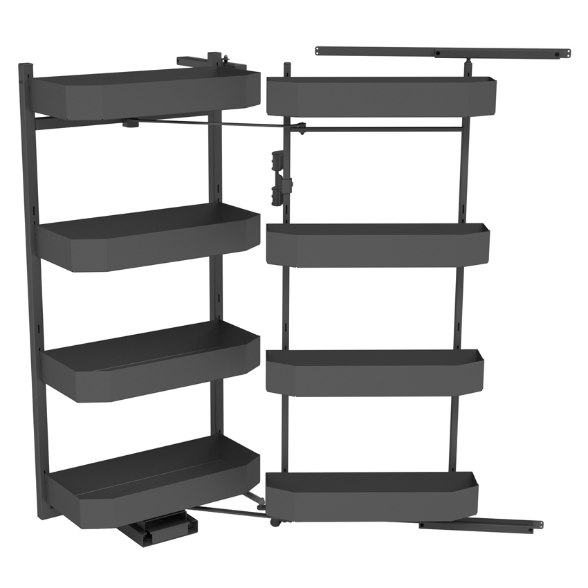 Самая высокая эффективность использования пространства в распашном высоком шкафу. Прекрасный обзор и легкий доступ ко всему содержимому благодаря разделению пространства шкафа. Очень легкое открывание и выдвижение - встроенный газовый лифт. Специальная конструкция исключает нагрузку на фасад, что облегчает эксплуатацию и продлевает срок службы мебели.
